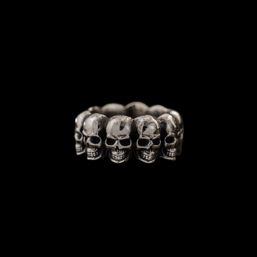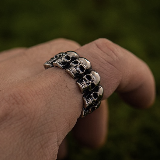 Ringed Skull symbolizes the cycle of death, memory, and return. Forged from titanium steel, its continuous form encircles the skull—a closed loop of endings feeding new beginnings. This piece speaks to those who wear their past not as weight, but as armor. Ringed Skull is a reminder that what dies does not disappear—it transforms, and remains.
